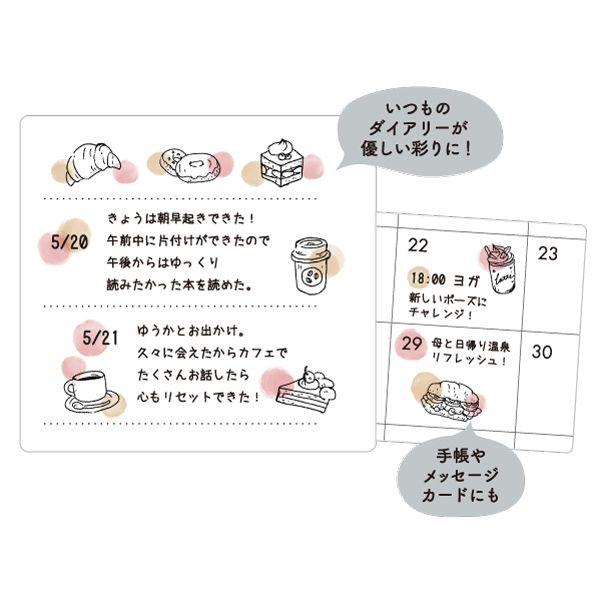 【商品説明】●その日の気持ちを書き出してみたり、趣味のことを記録したり、健康維持のための記録をしたり。水彩風のやさしいカラーのシールと繊細な線画のシールで手軽に統一感のあるページに仕上げることができます。●シールはクリア素材のため重ねて使えます。●ミシン目で半分に折りたたんだり切ったりしてコンパクトに持ち運べます。●素材: PET●Made in Japan●画像はイメージです。改良のため仕様・パッケージは予告なく変更する場合がございますのでご了承く