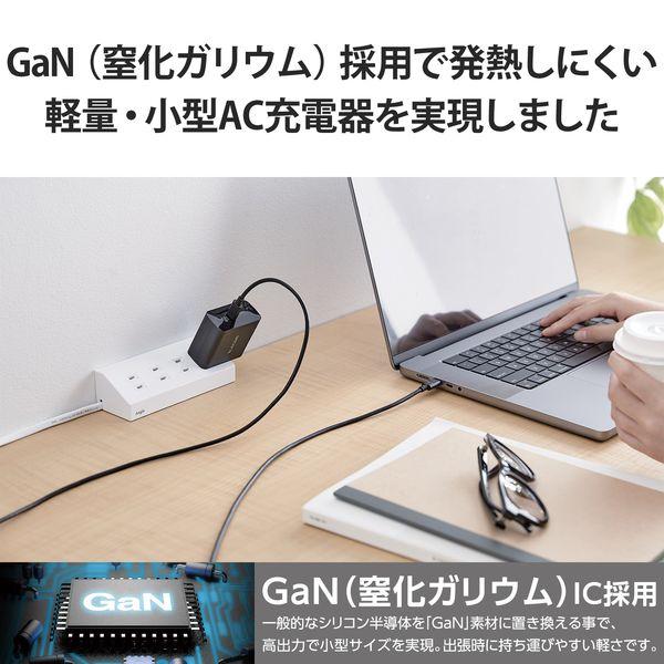 【商品説明】●USB Type-C(TM)(USB-C(TM))ポートを2ポート搭載し対応するスマートフォン、タブレット、ノートパソコンなどを充電できる、GaN(窒化ガリウム)を採用し小型で軽量なUSB AC充電器です。※USB Power Delivery規格65Wまでで充電できる機器に限ります。●出力端子が2ポートあるので、iPhoneなどのスマートフォンとWindowsなどのノートパソコンを2台同時充電できます。※2ポート同時出力時は合計最大70Wとなります。●USB Type-Cポートは、USB Power Delivery規格に対応し、同規格に対応するノートパソコンやスマートフォン、タブレットなどを充電可能です。●USB Type-Cポート単独使用時、機器に応じて出力が5V/3A、9V/3A、15V/3A、20V/3.25Aと可変し、iPhoneなどのスマートフォンから、iPadなどのタブレット、高性能なWindowsノートパソコンまで幅広く高速充電できます。●小型・軽量なので外出や出張などの際の持ち運びに便利です。●耐トラッキング性の要求事項(PSE:電気用品安全法)を満たしたコンセントプラグを採用しています。●USB Power Delivery(パワーデリバリー)とは、アダプターと接続機器間で情報をやり取りすることで、その機器間における最適な電力を選択し、高速充電を実現するUSB規格です。●本製品はUSB-IFのテストと同等のテストを弊社独自で実施し、高い安全性が保たれており、USB Power Delivery対応製品にご使用いただけます。※本製品のUSB Power Delivery最大出力は65Wです。※本製品にケーブルは同梱しておりません。別途MFi認証品のUSB Type-C - Lightningケーブルや、エレコムのUSB規格認証USB Type-C - USB Type-Cケーブル等をご用意ください。※機器本体や充電器が濡れた状態で充電すると、異常な発熱・焼損の原因となり大変危険ですのでおやめください。※USB Type-C and USB-C are trademarks of USB Implementers Forum●自社環境認定基準を1つ以上満たし、『THINK ECOLOGY』マークを表示した製品です。●廃棄物削減に取り組み、製品に同梱する取扱説明書等をペーパーレス化した製品です。●環境保全に取り組み、製品の包装容器におけるプラスチック重量を、社内基準製品より20%以上削減した製品です。●環境保全に取り組み、製品の包装容器が紙・ダンボール・ポリ袋のみで構成されている製品です。