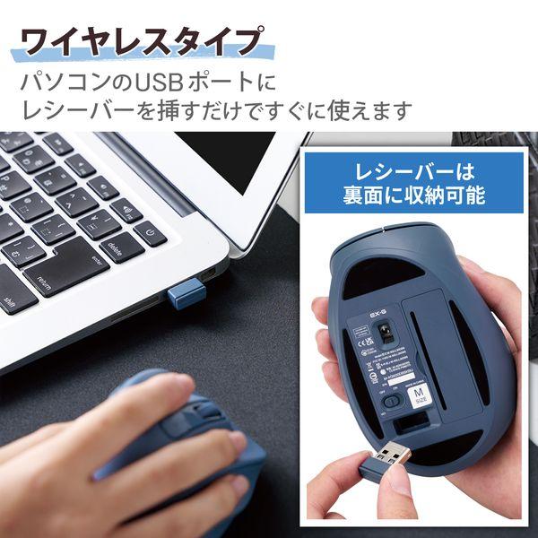 【商品説明】●医師との共同開発により究極の握り心地を実現した5ボタンマウス“EX-G”。●習志野台整形外科内科 宮川一郎院長ご協力のもと、手首を動かす「腕橈骨筋」と指を動かす「総指伸筋」に着目し、マウスを動かす手の筋に最適な角度と形状を追究しました。●手を自然に乗せるだけで使えるから、余計な力がかからず、手首と指の両方の負担を極限まで抑えた使い心地を実現しています。●“まるで握ってないような心地よさ”を実現させるために、角が取れた、繋ぎ目を感じさせない造形を採用しています。加えて、各ボタンへアクセスしやすいシームレスな操作感など、更に進化した握り心地を目指しました。●“EX-G”シリーズは、エムスリー株式会社が実施する、多数の医師が製品に対して客観的評価を行う「AskDoctors評価サービス」の認定商品です。医師100名の99%が「本製品を勧めたい」と評価しました。 ※2023年4月 AskDoctors調べ●医師100名の99%が「本製品を勧めたい」と評価しました。●左右ボタンには、パナソニック株式会社が開発した静音スイッチを採用。クリック感と耐久性を損なわず、高い静音性を実現しました。●気になるクリックのカチカチ音が響かないため、会議中のパソコン操作や在宅勤務時の早朝・夜間の作業などでも気にせず使用できます。●抗菌加工により、マウスの表面に付着した菌の繁殖を抑えて清潔に保ちます。(抗菌範囲:マウス筐体、ホイール部分)※こちらの製品は表面上における細菌の増殖を抑制、あるいは阻害する性能を有したもので、財団法人日本規格協会(JSA)が定める抗菌性試験に準拠したものです。●パソコンのUSBポートにレシーバーを挿すだけで、すぐに使用できるワイヤレスタイプです。●レシーバーは超小型タイプを採用し、マウス本体への収納も可能なため、紛失しにくく持ち運びにも便利です。●Webサイトやフォルダの操作時に便利な「進む」「戻る」ボタンが付いた5ボタンタイプです。●中指の先端から手のひらの下までの長さが180~195mmの方にピッタリとフィットするLサイズです。※上記は参考値です。●小さい凹凸やホコリがある環境でも正確にポインターを動かせる“BlueLEDセンサー”を搭載することで、木材・樹脂・ガラス製のデスクや、ノート、テーブルクロスの上などでも快適に操作できます。●無料でダウンロードできるボタン機能割り当てソフトウェア“エレコムマウスアシスタント”を利用すると、ボタンをお好みの機能にカスタマイズできます。●自社環境認定基準を1つ以上満たし、『THINK ECOLOGY』マークを表示した製品です。●廃棄物削減に取り組み、製品に同梱する取扱説明書等をペーパーレス化した製品です。