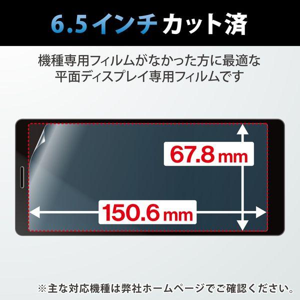 【商品説明】●6.5インチスマートフォンの液晶表示部を傷や汚れから守る、指紋防止タイプの高透明フィルムです。●機種専用の液晶保護フィルムが見つからない方にも最適です。●表示画面サイズ6.5インチ(画面解像度1600×720ドット、または2400×1080ドット)に対応しています。※湾曲した液晶画面には対応しない場合がありますので、必ずエレコムホームページから対応表をご確認ください。●つやのある高透明タイプで、液晶表示部を鮮やかに彩ります。●貼り付け面にシリコン皮膜をコーティングし、接着剤や両面テープを使わずに貼り付け可能な自己吸着タイプです。貼りやすく、貼り直しも可能です。●時間の経過とともに気泡が目立たなくなる、特殊吸着層を採用したエアーレスタイプです。●小さな気泡ができたときには、指などで押し出すことで気泡を抜くことができます。●指紋・皮脂汚れが付きにくく、残った場合でも簡単に拭き取れる指紋防止加工を施しています。●ハードコート加工により、フィルム表面の傷を防止します。●フィルムに抗菌機能を施し、細菌の繁殖を防ぎます。●こちらの製品は表面上における細菌の増殖を抑制、あるいは阻害する性能を有したもので、財団法人日本規格協会(JSA)が定める抗菌性試験に準拠したものです。※抗菌とは、製品の表面上に存在する細菌の増殖を抑制することです。JIS(日本産業規格)では抗菌加工されていない製品の表面と比較して、細菌を99%以上抑制出来ている場合、その製品に抗菌効果があると規定しています。●液晶表示部の形状に合わせたサイズにカット済みなので、パッケージから取り出してすぐに使用可能です。●フィルムを貼ったままでも本体操作ができる、タッチスクリーン入力に対応しています。●フィルムがキレイに貼れるホコリ取りシール、クリーニングクロスが付属しています。●自社環境認定基準を1つ以上満たし、『THINK ECOLOGY』マークを表示した製品です。●環境保全に取り組み、製品の包装容器が紙・ダンボール・ポリ袋のみで構成されている製品です。