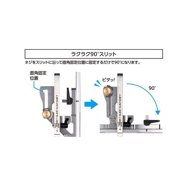 【商品説明】●突き当てがたためるのでコンパクトに収納でき、持ち運びに便利です。●ネジをスリットに沿って直角固定位置に固定するだけで90°になります。●ワンタッチで薄板切りと細切りの切り替えができます。突き当てを起こすことで薄板が入り込まずに切断できます。また、突き当てを倒すことで細切りが可能になります。●9mmボードを重ねた状態で切断するのに適した突き当ての高さで、2枚目の材料に干渉しません。●竿はサビにくく、曲がりにくいステンレス製(SUS304)です。●作業に合わせて突き当ての位置を調整できます。【仕様・規格】●突き当て高さ/薄板モード:15mm、細切モード:9mm●材質/竿・結合部:ステンレス、突き当て:アルミ、UHPEテープ ストッパーネジ:ステンレス、真ちゅう 保護キャップ:ポリカーボネート樹脂、ワンタッチレバー・止ネジ(ブレ防止金具部):ポリアセタール樹脂●本体サイズ/325×275×20mm(たたんだ時 巾89mm)●製品質量/288g