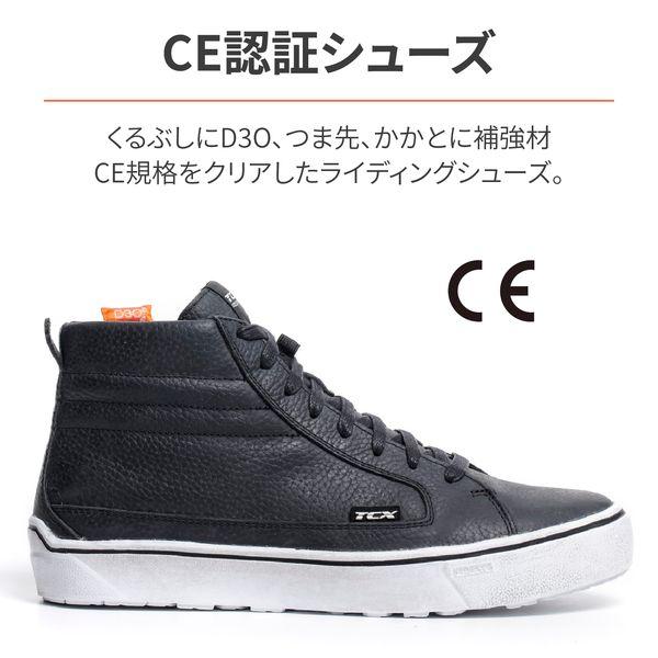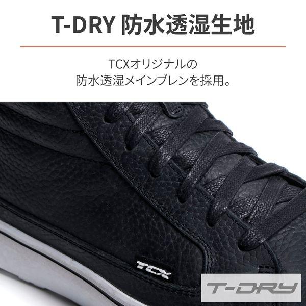 【商品説明】1982年に軍隊向けブーツ工場としてイタリア北部のモンテベルーナで創業したTCX社は、1999年にオリジナルブランド「OXTAR(現在はTCX)」を立ち上げる。ライディングブーツとして世界で初めて国際特許を取得したT.C.S.(トーションコントロールシステム)を採用したレーシングブーツを発売。足首の動きを妨げずに”ケガ”から守るシステムは、レーシングブーツ界にイノベーションを起こし、瞬く間に世界中でシェアを獲得。安全性を常に最優先に考えるTCXは、ヨーロッパで初めて、オートバイ用ブーツシューズ全ての製品にCE認証を導入。現在でも数多くのライディングギアブランド(BMW、トライアンフ、ダイネーゼ、DUCATIなど)がOEMを依頼している信頼性の高いブランドです。[ZPLATE]TCX独自の補強プレート形状で、CE規格に必要とされる強度を高めながら歩きやすさを両立。足の保護範囲を広げ、ライディング以外でも履き心地のよさを意識した作りとなっています。[D3O]くるぶしパッドには、強い力が加わると分子同士が結合し強力な膜を形成し衝撃をすばやく吸収し分散するD3Oを採用。[Ortholite]クッション性、フィット感、快適性は耐用期間はほとんど変化なく使用でき、インソール周囲に空気を循環させ、湿気を取り除き、足の蒸れを防ぎ、乾燥した快適状態を保つ機能付き。[grandtrax]アウトソールには、耐摩耗性ラバーコンパウンド採用。ステップと地面での優れた安定性とグリップを実現。[TーDRY]様々な気候環境に対応する、防水と湿度コントロールが可能なオリジナルの防水透湿メインブレンを採用。●アッパー:フルグレイン牛革●プロテクション:ZPLATEシャンク(ミッドソール) / D3O(くるぶし) / 補強材(つま先/かかと)●コンフォート:T-DRY防水透湿メインブレン / OrthoLite インソール / 靴ひも固定用バンド●アウトソール:groundtrax●女性にもおすすめなユニセックスタイプ