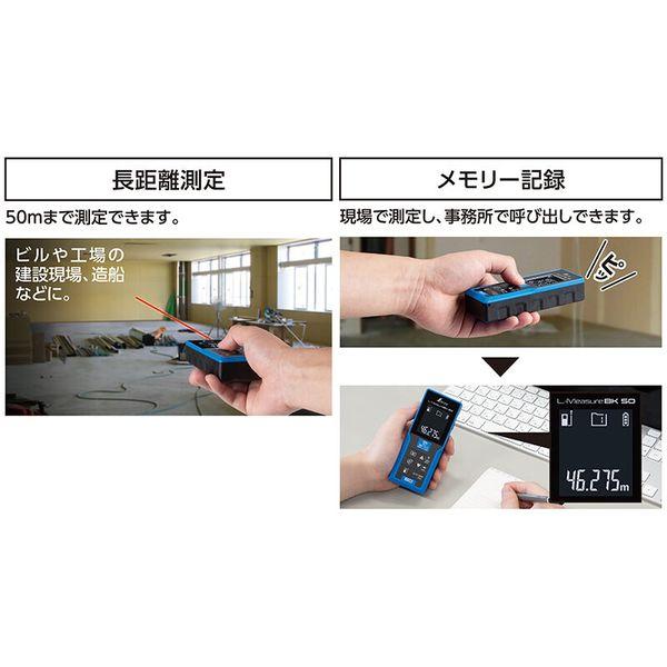 【商品説明】●明るい場所でも読み取りやすい、黒地に白文字の液晶を採用しました。 ●ボタンを押した時に生じる手ブレを時間差測定で防ぎます。 ●防塵・防水性能 保護等級IP54で水やホコリに強い設計です。 ●建築現場で便利な尺相当換算単位表示が可能です。 【仕様・規格】 ●測定範囲 0.3~50m ●精度 ±2.0mm ※1 ●出力 1mW以下(クラス2 JIS C6802:2018) ●波長 620~690nm ●使用温度 0~40℃ ●保管温度 -20~70℃ ●防塵・防水性能 IP54 ※2 ●電源 単4アルカリ乾電池 2本 ※3 (付属の電池はモニター用の為、寿命が短い場合があります。) ●材質 本体:ABS樹脂、アクリル樹脂、エラストマー樹脂 ●オートパワーオフ 無操作状態で約3分後 ※4 ●本体サイズ 122×47×26mm ●製品質量 120g(電池含) ●付属品 ストラップ、モニター用単4アルカリ乾電池 2本 ※1 0.1~10m…±2.0mm 10m以上…±[2.0+0.05×(D-10)]mm (D=測定距離 単位:m) 測定条件 (1)照度3,000ルクス以下 (2)反射率90%の白色ターゲット (3)測定温度25℃ ※2 防塵性能:粉塵が内部に侵入することを防止します。若干の粉塵の侵入があっても正常な運転を阻害しません。 防水性能:いかなる方向からの水の飛沫によっても有害な影響を受けません。 ※3 新品のアルカリ乾電池使用時、約5,000回の測定ができます。 ※4 オートパワーオフ時には、ピッと音が鳴ります。また、照射中のレーザー光は無操作状態が約30秒続くと消えます。