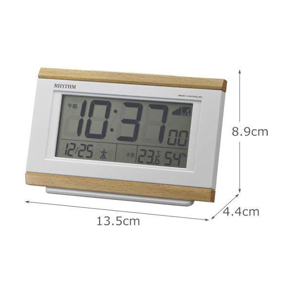 【商品説明】【特長】●電波時計なので時刻を自動修正します。●木目調の枠が、落ち着いた感じを出します。●温度、湿度、カレンダー、曜日、六曜の表示で多機能モデルです。【用途】●デスク周り、受付用に。【仕様】●幅(mm):135●奥行(mm):44●高さ(mm):89●色:ブラウン●電源:単3乾電池×2本(別売)●電池寿命:約1年●電源(V):単3乾電池×2本(別売)【仕様2】●電波時計●電子音アラーム・スヌーズ付●温度表示(-9.9~50℃)●湿度表示(20~95%)●カレンダー・六曜表示●ライト付●電池寿命:約1年●単3乾電池×2本(別売)【材質/仕上】●プラスチック【セット内容/付属品】●単3乾電池×2本