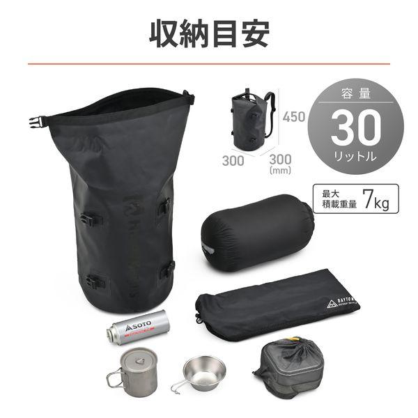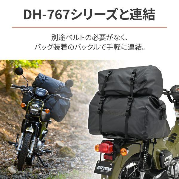 【商品説明】雨、泥を気にせずアクティブにバイクに乗りたい、そんなライダーのための防水バックパック。 ターポリン生地と縫い目のないシームレスで高い防水性を実現し、水だけでなく泥跳ねからも荷物を守ります。 水が浸入しないように出し入れ口はロールトップを採用。 付属の固定ベルトを使うことで、シートバッグとしての使用が可能。 防水シートバッグ(DH-749、DH-767シリーズ)と連結が可能で、更に用途が広がります。 【特長】 ●高い防水性のある生地とシームレス加工により、水だけでなく泥跳ねからも荷物を守る防水バックパック ●付属の固定ベルトでシートバッグとして利用可能 ●防水シートバッグ(DH-749、DH-767シリーズ)と連結が可能 【仕様】 ●容量:30L ●サイズ:Φ300×高さ450mm ●本体重量(付属品込):750g ●最大積載量:7kg ●素材:ターポリン生地 ●付属品:固定ベルト×4、ショルダーベルト×2