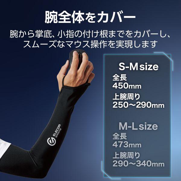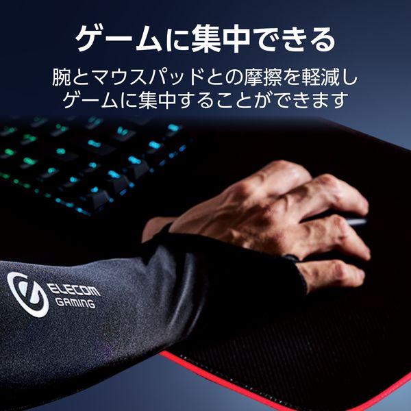 【商品説明】●“ELECOM GAMING V custom”は、プロからエントリーまで、勝ちにこだわるすべてのプレイヤーの皆様と向き合い、数値性能だけでなく、感覚的な使い心地を大切に作り込んだ、一人ひとりにぴったりハマる“勝てるデバイス”をお届けする、エレコムの新しいハイクラス・ゲーミングデバイスシリーズです。 ●FPS・TPSゲームの繊細なマウス操作をサポート!安定したエイム(照準合わせ)を実現し、勝利に導くゲーミング用アームカバーです。 ●汗による腕とマウスパッドとの摩擦を軽減。マウス操作を安定させ、ゲームに集中することでパフォーマンスを向上させます。 ●腕から掌底、小指の付け根までマウスパッドに接触する部分を広くカバーしているので、腕全体を動かすマウス操作をスムーズに行えます。 ●手のひら部分は生地がなく、マウスをしっかりと握れるので、ミリ単位の繊細な操作も可能です。 ●親指と小指を通す2つのフックで、激しい操作をしてもずれにくい形状です。 ●生地のたるみや浮きが気になりにくい縫製ラインと、伸縮性のある生地でフィット感を高めています。 ●縫い目が腕の側面にくるので、マウスパッドに当たらず滑らかな操作が可能です。 ●内側の縫い目はフラットでタグもないためチクチクしません。上腕部のゴムは柔らかく太いので、肌当たりがソフトで快適な着け心地です。 ●汚れても洗濯機で洗えるのでお手入れが簡単です。 ●右手・左手どちらでも使用できます。 ●自社環境認定基準を1つ以上満たし、『THINK ECOLOGY』マークを表示した製品です。 ●環境保全に取り組み、製品の包装容器が紙・ダンボール・ポリ袋のみで構成されている製品です。
