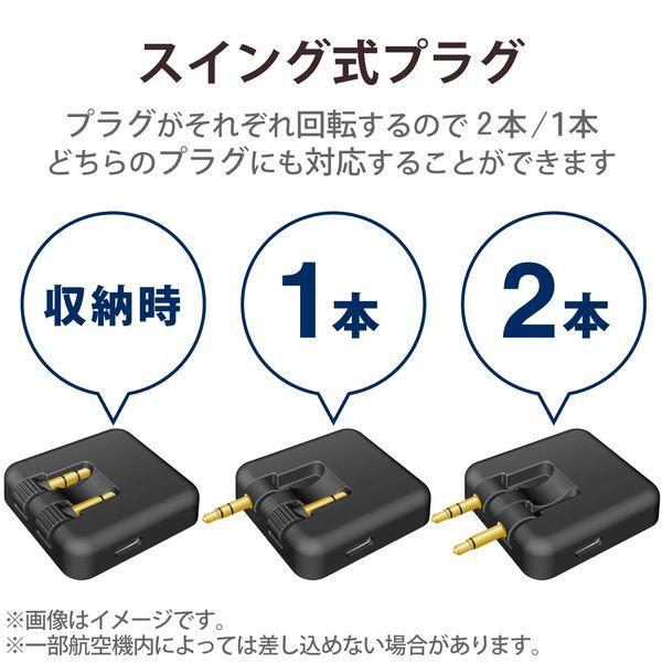 【商品説明】●機内エンターテイメントやテレビの音をいつも使っている無線イヤホン・ヘッドホンで聴くことができるBluetoothオーディオトランスミッタ―/レシーバーです。 ●2本のφ3.5mmプラグがそれぞれ回転するスイング式で、2本/1本どちらのプラグにも対応しています。航空機内のφ3.5mmデュアルジャックにもテレビのφ3.5mmヘッドホンジャックにも対応可能です。 ●送信モード・受信モード2つのモードに対応しており、一台で、送信機としても受信機としても使用できます。スイッチ一つでモードを簡単に切り替えることが可能です。 ●充電しながら使用できるので、バッテリー残量を気にする必要はありません。 ●イヤホン(ヘッドホン)2台に同時送信可能なデュアルストリーム機能付きで、2人で動画や音楽をシェアして楽しむことができます。 ●持ち歩きやすい軽量、小型タイプで旅行の際もかさばりません。 ●付属のオーディオ延長ケーブルを差し込むことで、プラグが差し込みづらい箇所でも使用可能です。 ※プラグ1本の場合のみ対応。 ●送信モードでは、飛行機やテレビなどBluetoothを搭載しない機器とBluetoothヘッドホンやイヤホンを接続することで、ワイヤレスで動画や音楽を楽しむことができます。 ●受信モードでは、スピーカーやコンポなどBluetoothを搭載しない機器とスマートフォンなどを接続することで、スマートフォンなどからワイヤレスで音楽などを再生して楽しむことができます。 ●連続音楽再生約24時間の長時間駆動を実現し、一日中使用できます。 ●簡単3ステップで接続可能で、Bluetoothに対応しないデバイスを簡単にワイヤレス化することができます。 ●自社環境認定基準を1つ以上満たし、『THINK ECOLOGY』マークを表示した製品です。 ●廃棄物削減に取り組み、製品に同梱する取扱説明書等をペーパーレス化した製品です。 ●環境保全に取り組み、製品の包装容器が紙・ダンボール・ポリ袋のみで構成されている製品です。