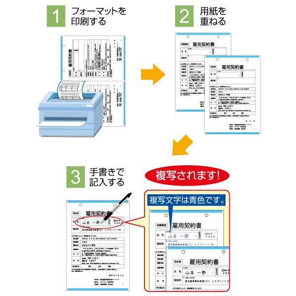 【商品説明】●レーザプリンタ対応のノーカーボン紙です!ノーカーボン紙同士を重ねて書くと、下の紙に文字が複写されます!●フォーマットを印刷することで、オリジナルの複写伝票を必要な数だけ作ることができます。●フォーマットを印刷しておけば、コピー機がなくても控えをその場で渡せます。●ミシン目入り・穴入り・カラータイプ等、用途に合わせて選べる豊富なラインナップ!●FSCマークのついた製品を選ぶことで、森林保全への貢献につながるため、エコな商品を選びたい方におススメです!