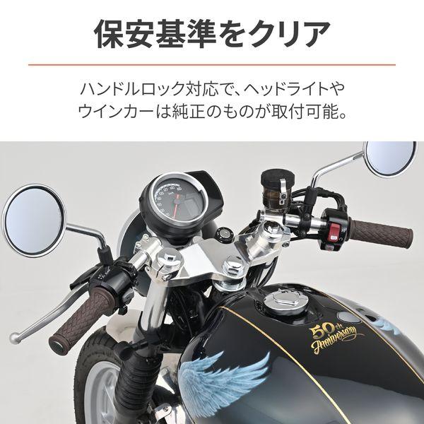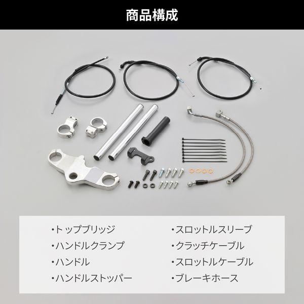 【商品説明】GB350/Sをカフェレーサースタイルにセパレートハンドルへスタイルを大きく変えるための、パーツ一式セットです。ショートケーブルも付属しているため、これ1つで全て揃いハンドル周辺もスッキリ。低すぎないハンドルポジションで、長時間の走行でも疲れにくい高さに設定。純正のヘッドライトとウインカーはそのまま装着可能です。ハンドルロック可能で保安基準もクリア。汎用バーエンドや汎用バーエンドミラーの装着可能(ハンドル内径φ16.5)でハンドルのスイッチBOX回り止め用穴を加工済。ローダウンキット(品番:30127/32520)と同時装着することで、よりカフェレーサースタイルに。VELONAタコメーター取付キット(品番:29848)の同時装着可能。【適合車種】GB350(23) [8BL-NC59]GB350S(23) [8BL-NC59]●GB350/Sをセパハンでカフェレーサースタイルに●低すぎないハンドルポジションで、長時間の走行でも疲れにくい高さに設定●純正ヘッドライト、ウインカー併用可能●商品構成:トップブリッジ、ハンドルクランプ、ハンドル、ハンドルストッパー、スロットルスリーブ、クラッチケーブル、スロットルケーブル、ブレーキホース※ フロントフォーク12mm突き出しで、ハンドリングがクイックになります。※ ブレーキホースの交換作業が必要です。重要保安部品のため認証工場での作業が義務付けられています。※ 車体寸法が変わるため車検証の記載変更が必要。※ 純正左右グリップは使用不可。120-125mmのグリップへ交換が必要です。※ 純正右ケーブルガイドは取り付け不可。※ 別売のタコメーターキット(品番:21912 / 21943)との同時装着はできません。※ 純正のハンドルロック位置の誤差があるため、ハンドルストッパーの加工が必要な場合があります。※ ブラストバリアー車種別キット(品番:26374/26375)との同時装着はできません。※ 21-22モデルには適合不可。