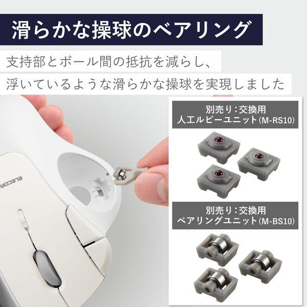 【商品説明】●楽な姿勢で操作できるエルゴノミクス形状と圧倒的になめらかな操作性を実現した、親指操作タイプのトラックボール“IST”。●握らず自然な手の形で使えるエルゴノミクスデザインを採用。手の大きさや握り方を問わず、手になじむ形状です。●手首に負担のかからない角度なので、長時間の作業でも快適です。●支持ユニットにはミネベアミツミ社製高性能ベアリングを採用。摩擦による抵抗が減るため、空中に浮いているような、なめらかな操球を実現しました。●ボール表面を擦らないので、支持ユニットにゴミが集まりにくく、長期間メンテナンスフリーでご使用いただけます。●支持ユニットは簡単に取り外し可能で、ベアリングはもちろん、人工ルビーにも交換可能です。※交換用のベアリングユニット(M-BS10)及び人工ルビーユニット(M-RS10)は別売です。●裏面の穴から簡単にボールを取り外し・交換が可能で、ボールや内部の支持ユニットのメンテナンスがしやすい設計です。●親指にフィットする直径36mm大型ボールを採用し、一度の操作でポインターを広範囲かつ繊細に動かせます。※交換ボール(M-B10SV)は別売です。●Webブラウザやフォルダの操作時に便利な「進む」、「戻る」ボタンを含めた5ボタンを搭載しています。●ボタンの機能割り当ては、無料でダウンロードできる「エレコム マウスアシスタント」を利用して変更可能です。●パソコンのUSBポートにレシーバーを挿すだけで、すぐに使用できるワイヤレスタイプです。●レシーバーは本体への収納が可能なため、紛失しにくく、持ち運びに便利です。●本体上面に電源スイッチがあり、本体を裏返さず、スムーズな電源のON/OFFが可能です。不使用時の電池の消耗を防止できます。●電池の交換時期をお知らせする電池残量表示ランプを搭載しています。●自社環境認定基準を1つ以上満たし、『THINK ECOLOGY』マークを表示した製品です。●廃棄物削減に取り組み、製品に同梱する取扱説明書等をペーパーレス化した製品です。●環境保全に取り組み、製品の包装容器におけるプラスチック重量を、社内基準製品より20%以上削減した製品です。●安心してご利用いただける保証期間「2年間」製品です。