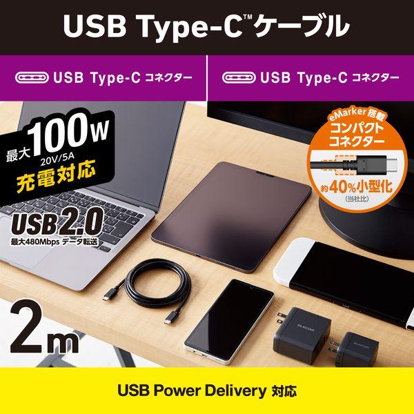 【商品説明】●USB Type-C(TM)ポート搭載のスマートフォンやパソコンなどに、USB Type-C(TM)ポート搭載の機器を接続し、充電やデータ転送ができるUSB2.0準拠ケーブルです。●USB Power Deliveryに対応しており、最大100W(20V/5A)で接続機器への給電が可能です。※接続する機器がUSB Power Delivery対応である必要があります。※ご使用になる機器の性能によって、供給される電流値が異なります。●従来品より約40%小型化(当社比)したコンパクトコネクターと、従来品より約10%スリム化(当社比)したケーブルによりスッキリ配線できます。●USB Type-C(TM)コネクターは、裏、表に関係なくケーブルを挿し込めます。●最大480Mbpsの高速データ転送が可能です。●難燃性の素材を使用し、安全性を高めています。●外部ノイズの干渉から信号を保護する2重シールドケーブルを採用しています。●サビなどに強く信号劣化を抑える金メッキピンを採用しています。●EUの「RoHS指令(電気・電子機器に対する特定有害物質の使用制限)」に準拠(10物質)した、環境にやさしい製品です。※USB Type-C and USB-C are trademarks of USB Implementers Forum●自社環境認定基準を1つ以上満たし、『THINK ECOLOGY』マークを表示した製品です。●環境保全に取り組み、製品の包装容器におけるプラスチック重量を、社内基準製品より20%以上削減した製品です。●環境保全に取り組み、製品の包装容器が紙・ダンボール・ポリ袋のみで構成されている製品です。