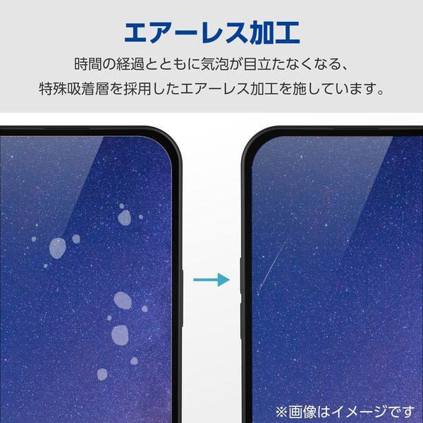 【商品説明】●ガラス特有のなめらかな指滑りを実現するブルーライトカットタイプの画面保護ガラスです。●ディスプレイが発する光の中の青い部分「ブルーライト」を約40%カットします。※ブルーライトは目の角膜や水晶体で吸収されずに網膜まで到達し、網膜の機能低下を引き起こす場合があると言われています。●表面硬度10Hの強化ガラス採用により、保護ガラス表面の傷を防止します。※当社基準による10H鉛筆硬度試験での実力値です。●フィルムを装着した状態でも、画面内指紋認証に対応します。※フィルムを装着した状態で画面内指紋認証機能を利用する場合は、装着した状態で指紋の再登録を行ってください。●指紋・皮脂汚れが付きにくく、残った場合でも簡単に拭き取れる指紋防止加工を施しています。●貼り付け面にシリコン皮膜をコーティングし、接着剤や両面テープを使わずに貼り付け可能な自己吸着タイプです。貼りやすく、貼り直しも可能です。●時間の経過とともに気泡が目立たなくなる、特殊吸着層を採用したエアーレスタイプです。●握ったときやかばんから取り出すときにも引っかかりにくいように、エッジに丸みをもたせた「ラウンドエッジ加工」を施しています。●特殊な飛散防止設計により、万が一割れてしまった際にもガラス片が飛散することなく、高い安全性を実現しています。●端末の形状に合わせたサイズにカット済みなので、パッケージから取り出してすぐに使用可能です。※画面の端が湾曲しているため、表示画面の幅よりも小さい仕様にしています。●フィルムがキレイに貼れる、クリーニングクロス、ホコリ取りシールが付属しています。●自社環境認定基準を1つ以上満たし、『THINK ECOLOGY』マークを表示した製品です。●廃棄物削減に取り組み、製品に同梱する取扱説明書等をペーパーレス化した製品です。●環境保全に取り組み、製品の包装容器において、原料に占める石油系プラスチック代替原料の割合が10%を超えている製品です。