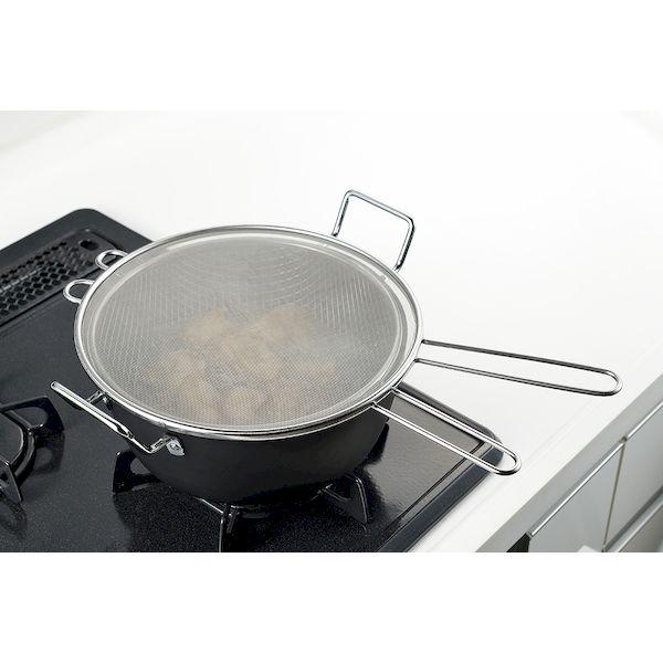 【商品説明】●熟練の技巧、信頼の日本製。●古くから金属加工が盛んな新潟県燕市。燕のハウスウェアは高い品質と魅力ある製品の創出により、国内は勿論、海外にも多くその名が知られ、多くの国で愛用されています。●ものづくりの伝統に育まれた職人たちの旺盛な研究心と高度な技術が、地域の産業を支え、燕ブランドを世界に発信し続けています。●大量の揚げ物に便利な天ぷら鍋。●ポテトフライや唐揚げなどの食材を一度にたくさん油切が出来ます。●細かいメッシュで油跳ねをガードし、レンジまわりの汚れの軽減に。※ご使用の際は必ずミトン等をご使用ください。●IH200V対応なので全ての熱源で使用できます。【商品サイズ】●天ぷら鍋/220×300×120mm●手つきフライヤー/220×370×80mm●油はねガード/240×397×8mm【材質】●本体/鉄(表面シリコン樹脂塗膜)●ハンドル/鉄(クロムメッキ)●手付きフライヤー/18-8ステンレス●油はねガード/18-8ステンレス