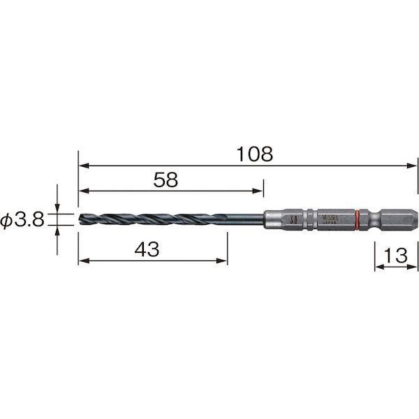 ベッセルメーカーお問い合わせ:0120-999-914【特長】●樹脂リングが芯振れ・ガタつきを抑制し、正確な穴あけを実現します。●芯振れ激減で高速穴あけができます。【用途】●被削材:鉄、軽金属、合成樹脂、木材。【仕様】●刃径(mm):3.8●溝長(mm):43●全長(mm):108●シャンク径(mm):6.35【仕様2】●リング色:赤【材質/仕上】●高速度鋼(HSS)【原産国】中国