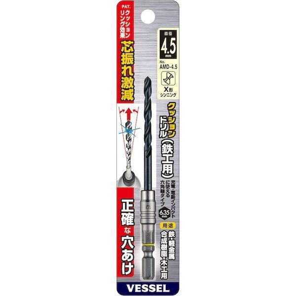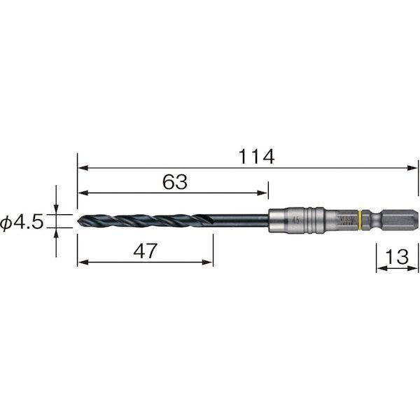 ベッセルメーカーお問い合わせ:0120-999-914【特長】●樹脂リングが芯振れ・ガタつきを抑制し、正確な穴あけを実現します。●芯振れ激減で高速穴あけができます。【用途】●被削材:鉄、軽金属、合成樹脂、木材。【仕様】●刃径(mm):4.5●溝長(mm):47●全長(mm):114●シャンク径(mm):6.35【仕様2】●リング色:黄【材質/仕上】●高速度鋼(HSS)【原産国】中国