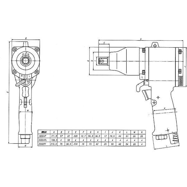 ベッセルメーカーお問い合わせ:0120-999-914【特長】●1回転1打撃式で全長が短く、奥行きのない場所、リフトアップでの下方向からの締め付けに適しています。【用途】●高トルクを必要とする産業用・自動車整備業界用。【仕様】●能力ボルト径(mm):20●ソケット差込角(mm):19.0●最大締付トルク(N・m):460.9●無負荷回転数(min[[の-1乗]]):5500●空気消費量([[M3]]/min):0.43●ホース取付口:Rc1/4●排気:後方●全長(mm):210●ハンマータイプ:シングルハンマー●無負荷回転数(rpm):5500【仕様2】●使用空気圧力:0.6MPa【注意】●締付トルクは目安値です。条件によりトルク値はかわります。【原産国】日本