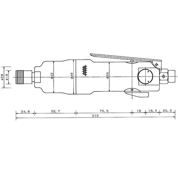 ベッセルメーカーお問い合わせ:0120-999-914【特長】●ダブルハンマー(1回転2打撃)のため、安定した締め付けが行えます。●小型・軽量で強力な締めつけ力が得られます。●1回転2打撃タイプのため、安定した締め付けが行えます。●小型・軽量で強力な締め付け力が得られます。【用途】●下向きでのねじ締め用。●組立ラインでの作業などに。【仕様】●ビット差込口(mm):6.35●能力ねじ寸法(mm):5~6●最大締付トルク(N・m):40.5●無負荷回転数(min[[の-1乗]]):8500●空気消費量([[M3]]/min):0.30●ホース取付口:Rc1/4●排気:上方●全長(mm):213●無負荷回転数(rpm):8500●適合ビット:国内標準タイプ(13mm)●チャック方式:ビットスリーブ式【仕様2】●使用空気圧力:0.6MPa【注意】●締付トルクは目安値です。条件によりトルク値はかわります。【原産国】日本