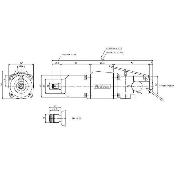 ベッセルメーカーお問い合わせ:0120-999-914【特長】●1回転で2打撃のため安定した締め付けができます。●使用頻度の高いラインでの耐久性に優れています。【用途】●一般産業、組み立て、分解作業に。【仕様】●能力ボルト径(mm):6~8●ソケット差込角(mm):9.5●最大締付トルク(N・m):121.6●無負荷回転数(min[[の-1乗]]):7500●空気消費量([[M3]]/min):0.35●ホース取付口:Rc1/4●排気:側方●全長(mm):210●ハンマータイプ:ダブルハンマー●無負荷回転数(rpm):7500【仕様2】●使用空気圧力:0.6MPa【注意】●締付トルクは目安値です。条件によりトルク値はかわります。【原産国】日本