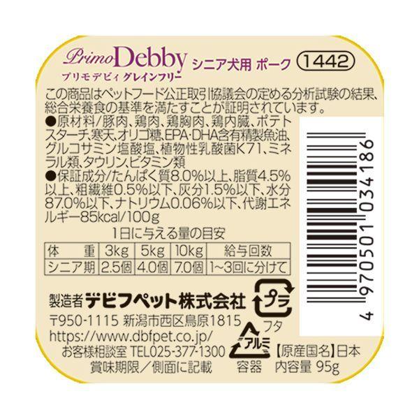 【商品説明】●豚肉と鶏肉、鶏胸肉、鶏内臓を細かいミンチにして加え、グレインフリー(穀物不使用)で作りました。●オリゴ糖、EPA・DHA、植物性乳酸菌K71配合。●高齢期の健康に配慮して、グルコサミン、タウリンを配合しました。●原材料:豚肉、鶏肉、鶏胸肉、鶏内臓、ポテトスターチ、寒天、オリゴ糖、EPA・DHA含有精製魚油、グルコサミン塩酸塩、植物性乳酸菌K71、ミネラル類、タウリン、ビタミン類●保証成分:たんぱく質8.0%以上、脂質4.5%以上、粗繊維0.5%以下、灰分1.5%以下、水分87.0%以下、ナトリウム0.06%以下●エネルギー:85kcal/100g●賞味期限:36ヶ月●原産国または製造地:日本犬 フード ウェット トレー 穀物不使用 総合栄養食 シニア 高齢