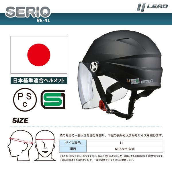 【商品説明】タウンユースに適したシールド付き軽量ハーフモデル(LLサイズ)。 誰もが目を引くシャープなシェルデザイン。軽量・コンパクトなシェルに同行封を効率よくヘルメット内部へ導くダイレクトインテークをフロントの両サイドに装備。 ●開閉式シールド: シールド素材には強靭なポリカーボネイトを採用。ハードコート・UVカット仕様。段階的に開閉可能なラチェット方式を採用。全天候に対応したライトスモークシールドを標準装備。 ●エアベンチレーション: フロントの両サイドにダイレクトインテークを装備。走行風を効率よくヘルメットの内部へ導きます。 ●内装: 頭周り61~62cm未満まで対応したLLサイズ。内装は天井部分に通気性の良いメッシュ材を使用し、帽体内にこもりやすい熱やムレを軽減。 ●ラチェット式バックル: 着脱、調整の容易さはもちろんラチェットを締めた際の圧力に偏りが少なく優れたフィット感を実現。ヘルメットホルダー固定用のDリングを装備。 商品名:SERIO RE-41 カラー:ホワイト サイズ:LL(XL) 標準シールド:ライトスモーク 規格:PSC、SG(125cc以下用) 素材:帽体=ABS シールド=ポリカーボネイト 重量:約800g 外寸:約W245×D310×H220mm 付属品:サイズ調整スポンジ