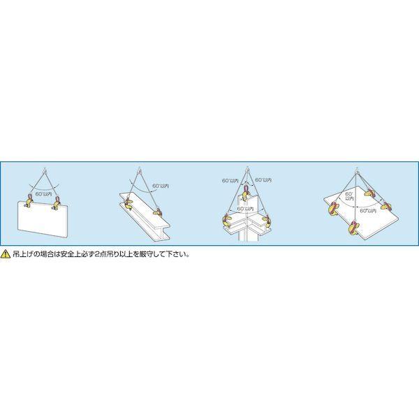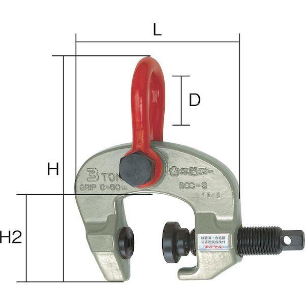 スーパーツールメーカーお問い合わせ:0120-86-4859【特長】●ねじ式で球面板、曲板などあらゆる物の水平吊り、垂直吊り、反転作業ができる万能型吊りクランプです。●負荷時は過重に比例してカムが傾斜し、グリップ力が増します。●本体は特殊合金鋼の一体型の型鍛造で、強靭かつ抜群の耐久性があります。【用途】●鋼板、形鋼などの吊り上げ。【仕様】●基本使用荷重(t):0.5●クランプ範囲(mm):0~28●寸法(mm)D:17●寸法(mm)H:113●寸法(mm)H2:43●寸法(mm)L:104【原産国】日本