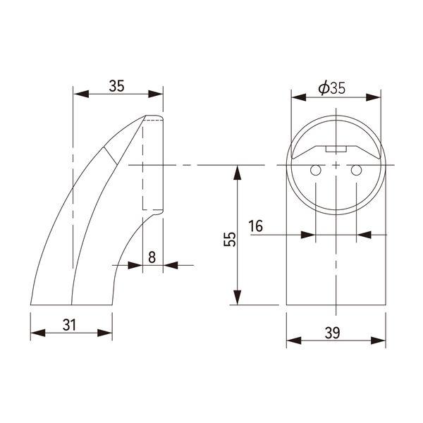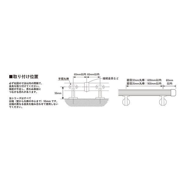 【商品説明】●屋内用手すり金具 ●表からねじが見えないカバー付き、コンパクトな形状で見た目すっきり ●直径32mm、35mmの手すり丸棒に対応しています ●手すり端部が衣服で引っかかるのを防ぐ安心デザインの受金具です。 ●コンパクトでシンプルなデザインですので、スッキリとした手すりの取り付けができます。 【商品用途】 ●玄関、廊下、階段等に手すりをつける際の金具としてご利用ください。 【注意】 ●壁が石膏ボードや薄いベニヤ板など強度がない場合は下地(柱、間柱)がある場所に取り付けてください。ブラケットを取り付けたい場所に下地が無い場合はベース板で補強してください。 ●壁、丸棒の取り付け前に必ず下穴をあけてください。 ●屋外、浴室など湿気が多い場所では使用できません。 ●商品仕様、パッケージについて予告なく変更する場合があります。 ●掲載の画像は画面、印刷時の映り方によって、実物と色味が若干異なって見える場合があります。あらかじめご了承ください。 【仕様】 ●直径32mm、35mm丸棒兼用 【カラー】 ●シルバー 【材質】 ●本体/亜鉛合金、カバー/PP、φ32変換アダプター/PP、ねじ/鉄 【付属品】 ●φ32変換アダプター1個、壁面固定ねじ/なべ4×40mm・3本、丸棒固定ねじ/皿3.5×20mm・2本室内手すり エンド 建築資材 金物 転倒防止 介護用品 DIY