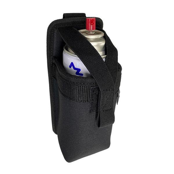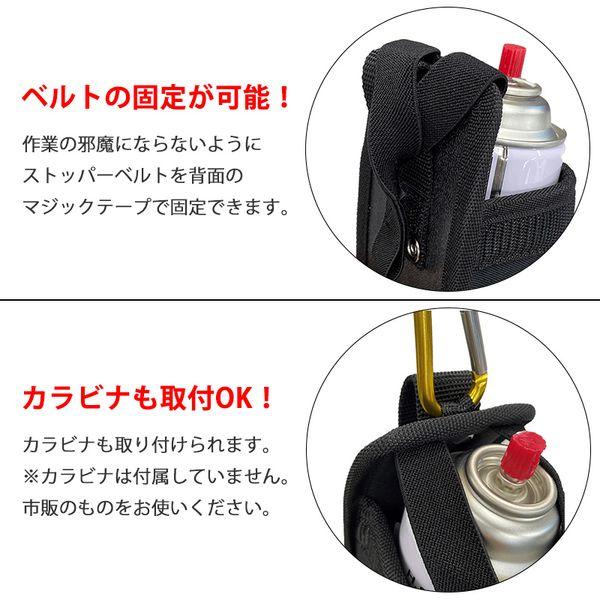 【商品説明】●スプレー缶の脱落防止ストッパーベルト付きのホルダー!●作業の邪魔にならないようにストッパーベルトを背面のマジックテープで固定できます。●また、カラビナの取付も可能です。(カラビナは付属していません。市販のものをお使いください。)※写真の缶の直径は約65mmです。【仕様・規格】●サイズ:H200(155) x W80 x D80 mm ●材質:ポリエステル