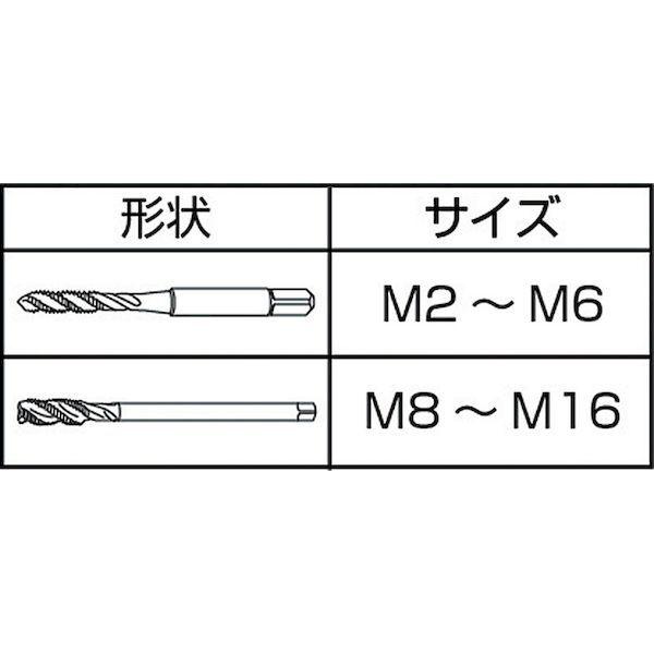 イシハシ精工メーカーお問い合わせ:072-982-0123【特長】●難削ステンレス鋼に抜群の切れ味と耐久性です。●特殊な形状設計と特殊二番加工で摩耗トルクを低減します。【用途】●止まり穴加工用。●被削材:ステンレス鋼、低・中炭素鋼。【仕様】●精度:H3●呼び寸法:M12.0●ピッチ(mm):1.75●ねじ長さ(mm):29●全長(mm):82●シャンク径(mm):8.5●シャンク四角部(mm):6.5●下穴径(mm):10.3●加工ねじ:メートルねじ●食い付山数:2.5山●表面処理:ホモ処理【仕様2】●タップ等級:JIS級【材質/仕上】●高速度鋼(HSS-E)【原産国】日本