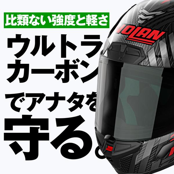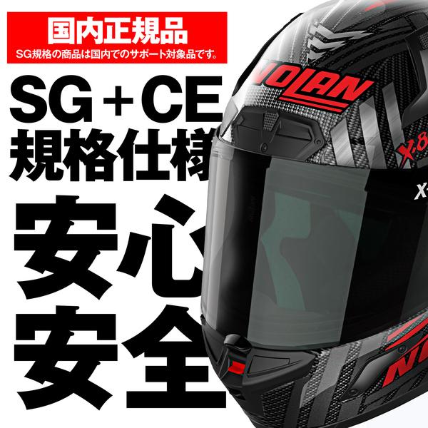 ●カーボンとコンポジットファイバーをシェルに採用。帽体はMFJ公認SG規格、シールドはECE規格をクリア。軽さと強度を両立させたフラッグシップモデル