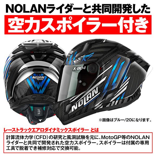 計算流体力学(CFD)の研究と風洞試験を元に、MotoGP等のNOLANライダーと共同で 開発された空力スポイラー。取り外し可能。
