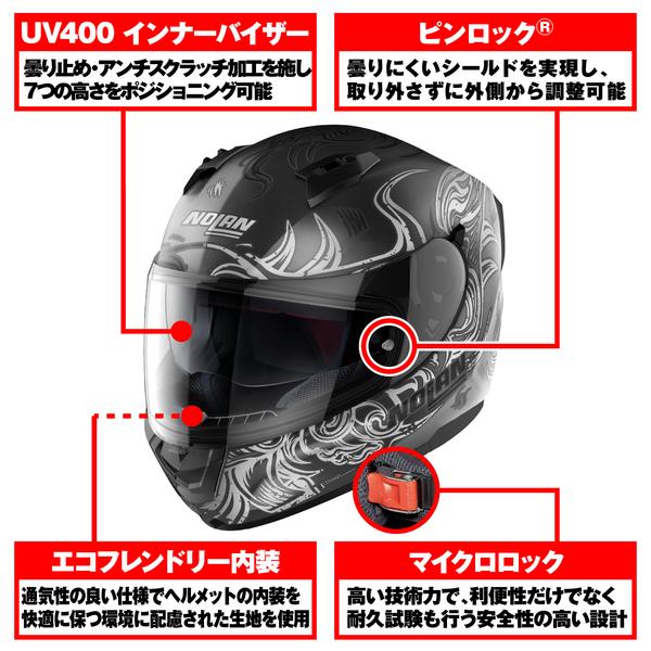 UV400インナーバイザー(紫外線カット機能)は、両面に曇り防止およびアンチスクラッチ加工済み。