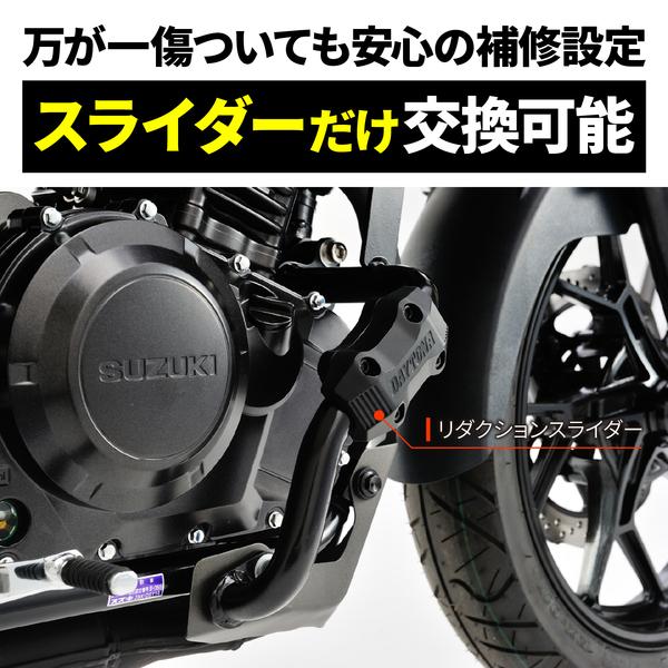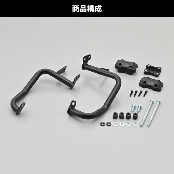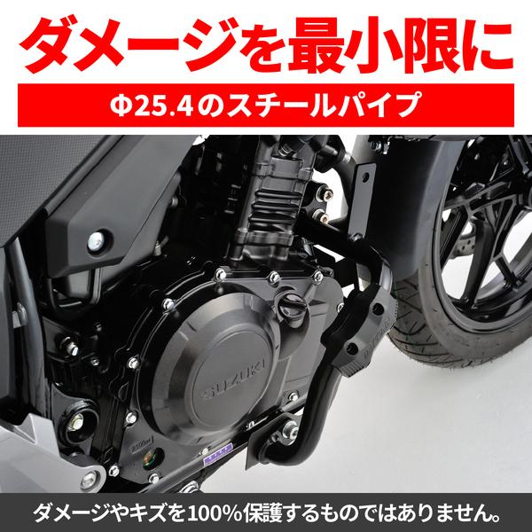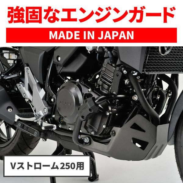 【商品説明】迫力あるフレームワークのパイプエンジンガード。転倒時の車両のダメージを軽減。車体の全体のイメージを損なわないコンパクト設計。横に大きく張り出さない仕様で目立ちにくくスタイリッシュなデザインです。目立たないマットブラック塗装済み。メインパイプはφ25.4パイプで軽度な転倒時にクランクケース周りを保護し、エンジンへのダメージを最小限にします。MADE IN JAPAN。【適合車種】Vストローム250/ABS(17-23) [2BK-DS11A / 8BK-DS12E]・左右セット・樹脂パッド(リダクションスライダー)付属●適合車種:Vストローム250/ABS(17-23)●軽度な転倒時にクランクケース周りを保護し、エンジンへのダメージを最小限に●大きく外側へ張り出さない仕様で、装着してもスタイリッシュで目立ちにくいデザイン●全体のイメージを損なわないコンパクト設計●樹脂パッド(リダクションスライダー)付属適合モデル:Vストローム250/ABS(17-23) [2BK-DS11A / 8BK-DS12E]※ Lower(品番:46609)単品装着の場合、Upper(品番:46598)との連結ブラケットが残ります。※ Lower(品番:46609)単品装着の場合、残ってしまう連結ブラケットは、ハンドルクランプ用品を取り付けた際の、脱落防止用のストラップホールとして使用可能です。※ 社外品EXパイプに交換した場合、干渉することがあります。(SP TADAO社「Power Box PIPE」は同時装着が可能です。)