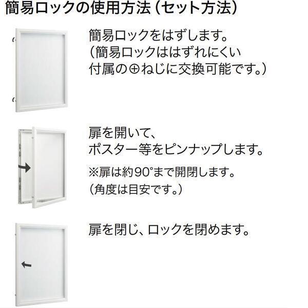 【商品説明】●特徴:屋外でも屋内でも使用できます。パッキン付で防滴型です。マグネットが使用できます。取付方法:扉を開け、付属のねじにて取り付けます。平らな壁面・又はスペーサー等を当てるなどして 真っすぐに取り付けてください。フレームがねじれると防滴効果に支障が出ることがあります。●掲示可能最大用紙寸法(W×H):A1(594×841)●色:ブラック●材質:枠:アルミ二ウム/掲示面:鉄複合板●仕上:枠:アルマイト処理/掲示面:アクリル焼付塗装<