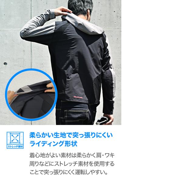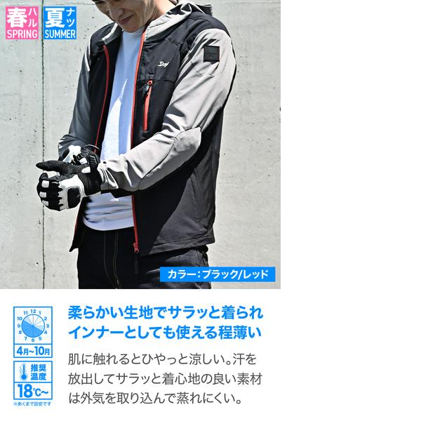 【商品説明】生地の薄さにこだわり、強度もあるリップストップ生地「COOL DRY EXTRA」素材を採用。過酷な日本の夏に対応するため「吸湿・速乾・接触冷感」の機能に加え、「高い通気性・UVカット・ストレッチ性」を兼ね備えた高性能バイクジャケット。生地が薄いことで、信号待ちなどの停車時にも暑さを和らげます。圧迫や摩擦抵抗を少なく運動機能をあげるように計算されたデイトナオリジナルパターンで製造。更にハイストレッチで通気性の高いメッシュ素材を後腕と後身ごろに配置。体の動きを妨げず、ライディングに適した着心地のよい一着に。CE規格をクリアしたソフトプロテクターを「肩、ひじ、背中、胸」に標準装備。肩とひじは外側からプロテクターを入れることができスポーティな作り。フードは、部分的にメッシュを採用。風が通り抜け、ばたつきを抑えます。ロールしてベルト止めも可能。寒い時期はアウターの下に着用しインナープロテクターとしてご使用いただけます。●シーズン:春夏●生地の薄さにこだわった「COOL DRY EXTRA」素材。「吸湿・速乾・接触冷感」に加え「高い通気性・UVカット・ストレッチ性」を兼ね備えた高性能バイクジャケット●デイトナが考えるオリジナルパターンにハイストレッチ生地を組み合わせることで、乗車姿勢を保ちやすい快適な着心地を実現●ソフトプロテクターは全てCE規格クリア(背中、肩、ひじ、胸:Lv1)●寒い時期はインナープロテクターとして使用可能