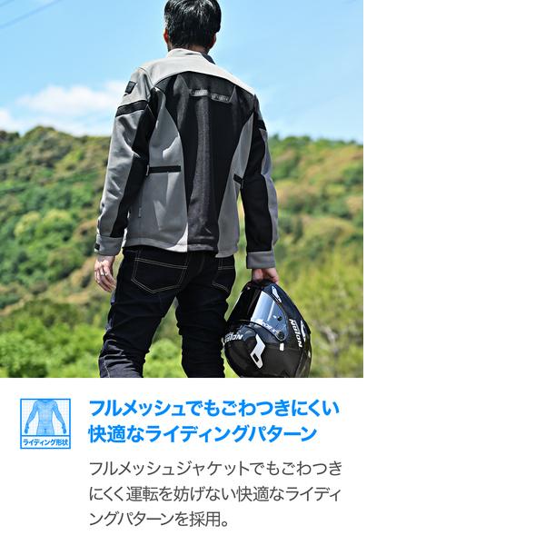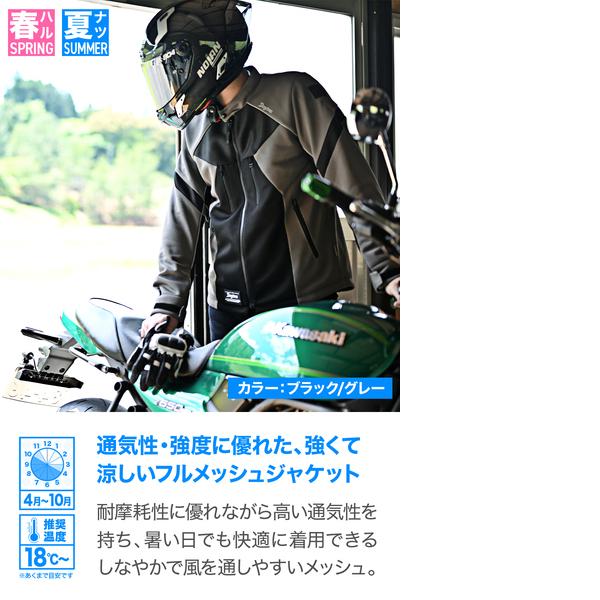 【商品説明】耐久性の課題を解決した高強度メッシュ採用の長持ちするメッシュジャケット。一般的なメッシュジャケットは耐久性に課題があると考え、通気性と強度を両立した「高強度・高通気メッシュ」を採用しました。通気性に優れたメッシュ生地はしなやかで、涼しい風をジャケット内に取り込みます。圧迫や摩擦抵抗を少なく運動機能をあげるように計算されたデイトナオリジナルパターンで製造。体の動きを妨げず、ライディングに適した着心地のよい一着に。CE規格をクリアしたソフトプロテクターを「肩、ひじ、背中、胸」に標準装備。●シーズン:春夏●高強度メッシュにより、耐久性の課題を解決した長持ちするメッシュジャケット●デイトナが考えるオリジナルパターンにより、乗車姿勢を保ちやすい快適な着心地を実現●反射素材のパイピングが夜間の視認性を向上●ソフトプロテクターは全てCE規格クリア(背中、肩、ひじ、胸:Lv1)