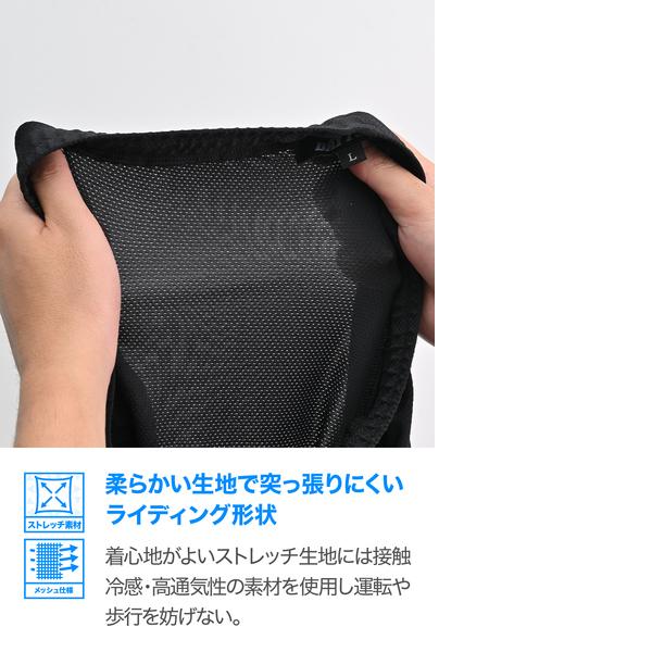 【商品説明】「接触冷感・吸湿速乾」に優れるストレッチ生地を採用した夏用のインナープロテクターパンツ。ケガをしやすい足は夏でも保護性能の高いデニムを履く場合が多く、走行風による冷却が難しいことに着目。メッシュではなく接触冷感で熱を防ぎ、蒸れ対策として吸湿速乾性に優れた生地を採用しています。また高いストレッチ性によりインナーのツッパリ感を軽減し、快適なライディングポジションをキープできます。ひざ、サイドヒップに装備されたプロテクターは、シート状でフレキシブルに追従するSAS-TEC「トリプルフレックスシート」を採用。CE規格を取得した高い安全性と、3つ角の衝撃吸収素材が可動部をしなやかに包み込み、あらゆる体のラインにフィット。プロテクター装着の違和感を減らし、パンツの上からも目立ちません。ひざプロテクターの位置は上下に移動でき、面ファスナーによりお好みのポジションに固定できます。●夏でも涼しく着れる「接触冷感・吸湿速乾」で、暑さと蒸れを軽減●高いストレッチ性がツッパリ感を軽減し、快適なライディングポジションをキープ●プロテクターはフレキシブルに体に追従するSAS-TEC製「トリプルフレックスシート」を採用●プロテクターの目立ちにくさと、つけていることを忘れるほどの動きやすさを実現●SAS-TEC製トリプルフレックス:サイドヒップ(CEレベル1) 、ひざ(CEレベル1)※ ウエスト、ヒップは製品寸法ではありません。サイズは目安としてご参考ください。※ 股下は製品寸法です。インナーパンツのため短めの設計となっております。
