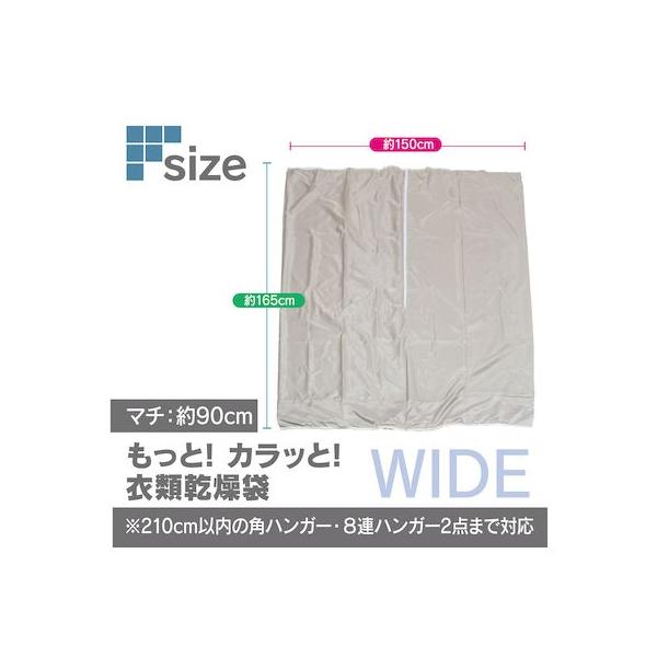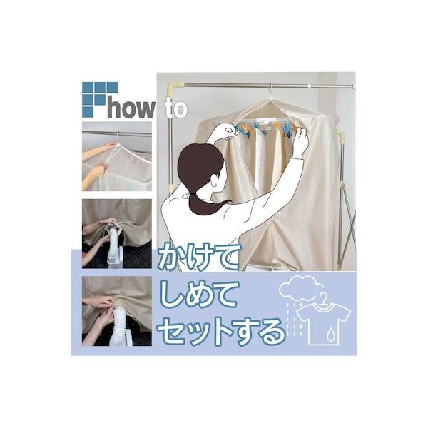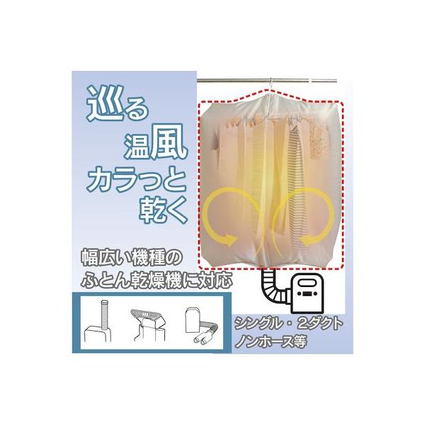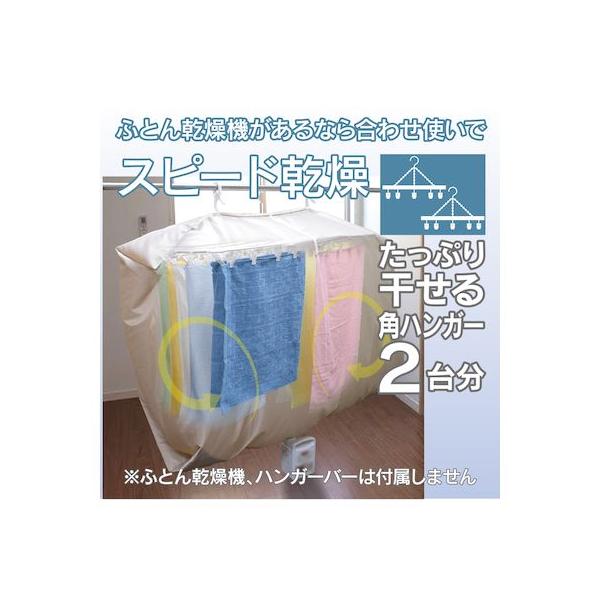 【商品説明】●サイズ(約):幅150×高さ165(マチ90)cm●重量:598g、生産国:中国●材質:ポリエステル●対応乾燥機:温風吹き出し口の周囲が70cm以内の機種、シングルホースタイプ、ノンホースタイプ、2ダクトタイプにも対応。●特徴:洗濯物が乾きにくい雨の日や寒い季節にも、ふとん乾燥機を使ってスピード乾燥。角ハンガー2台分の洗濯物を一気に乾かせるビックサイズが登場しました。●特徴:洗濯物が乾きにくい雨の日や寒い季節にも、ふとん乾燥機を使ってスピード乾燥。角ハンガー2台分の洗濯物を一気に乾かせるビックサイズが登場しました。●周囲が210cm以内の角ハンガーや8連ハンガー等を2台並べた後、本品を被せてお手持ちの布団乾燥機をセットして使用します。