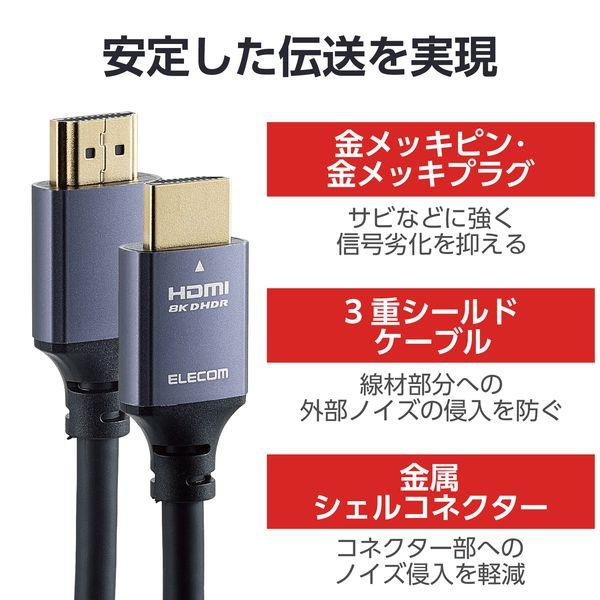 【商品説明】●最大8K/60Hzの解像度に対応した、認証済みのウルトラハイスピードHDMI(R)ケーブルです。HDMI出力端子を搭載したゲーム機などの接続におすすめです。●1本のケーブルで、映像信号と音声信号をデジタルのままで高速伝送するだけでなく、イーサネット信号の双方向通信を実現します。●100Mbpsのイーサネット通信を実現する、HEC(HDMIイーサネットチャンネル)に対応しています。●eARC対応により、高ビットレート(192kHz/24bit)と、非圧縮の5.1chと7.1ch音声に対応した迫力あるオブジェクトベースオーディオを再生可能です。●最大8K(7680×4320px)/60Hz、4K(3840×2160px)/120Hzの解像度に対応しております。●映像フレームごとに適切な明るさとコントラストを適用する動的明暗表現に対応し、より鮮明な映像を伝送可能にするDynamic HDRに対応しています。●従来のHDR10に比べ、フレームごとにより広い明暗差、色域、コントラストを伝送することができるDolby Vision(R)に対応しています。●ゲームモードVRRに対応することで、可変リフレッシュレートにより、パソコンなどの機器とディスプレイの間で起こるタイムラグやカクつきを最小限に抑え、滑らかな映像伝送を行います。●従来のBT.709に比べ、より広い色域をカバーしたBT.2020映像の伝送が可能です。●著作権保護技術のHDCP2.3、HDCP2.2、HDCP1.4に対応しています。●サビなどに強く信号劣化を抑える金メッキピン・金メッキプラグを採用しています。●外部ノイズの干渉から信号を保護する3重シールドケーブルを採用しています。●コネクター部にもノイズを軽減する金属シェルコネクターを採用しています。●自社環境認定基準を1つ以上満たし、『THINK ECOLOGY』マークを表示した製品です。●環境保全に取り組み、製品の包装容器におけるプラスチック重量を、社内基準製品より20%以上削減した製品です。●環境保全に取り組み、製品の包装容器が紙・ダンボール・ポリ袋のみで構成されている製品です。HDMI 2.1 ケーブル ウルトラハイスピード 3m 8K 60Hz 4K 120Hz eARC VRR Dynamic HDR ブラック GMHD21E30BK