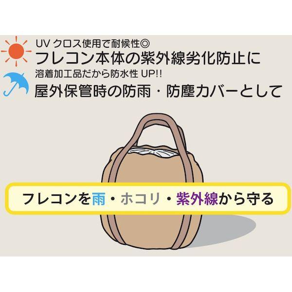 【商品説明】●特徴:フレコンバックの屋外保管の強い味方!雨・雪・紫外線・埃などからフレキシブルコンテナバッグを守ります。フレコンバック内の濡らしたくない物への保護に内的なトン袋用カバーとなります。裾には縛りヒモを通してあり、カバーをかぶせヒモを絞るだけの簡単設置。UV#3400シート溶着加工品だから防水性UP!屋外保管時の防雨・防塵カバーにおすすめです。UVクロス使用で耐候性◎!フレコン本体の紫外線劣化防止に最適!UV#3400:エステル帆布やターポリンと比べ重量は1/3~1/2程度で軽く、織物になっており突起物による小孔が生じても広がる心配が少ない強い。耐候材を添加してあり一般的なブルーシートに比べ長持ちします。●用途:フレコンバック、フレキシブルコンテナバック、トン袋、1トン土のう、トン袋、1トン土嚢の保護カバーに●材質:UV#3400●色:シルバー/ブラック●タイプ:UVタイプ●加工:溶着●カバーサイズΦ×H(mm):1150×1100●対応フレコンサイズΦ×H(mm):1100×1100●仕様:裾絞りひも付き●注意:※完全防水ではありません。※屋外での使用時は設置環境により劣化状況が異なります。