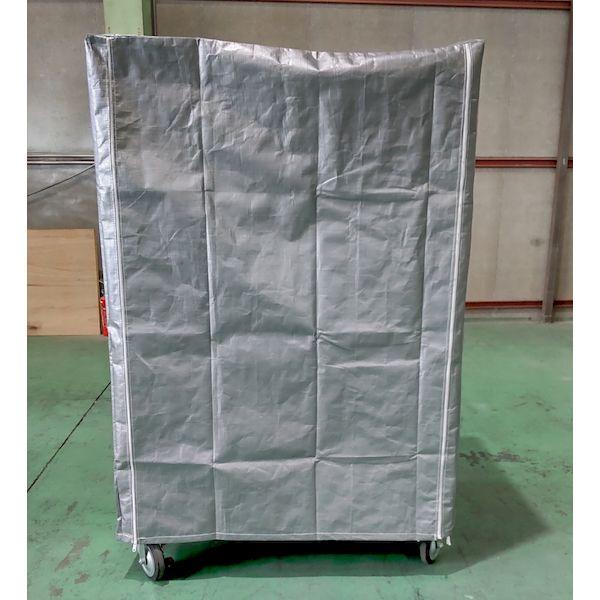 【商品説明】●特徴:倉庫・物流センター・工場・バックヤードなどで利用されるカゴ車・カゴ台車用保護カバーです。UV#4000シルバー生地でUV剤が添加されております。UVクロス製で耐候性◎!防塵・防雨対策に!軽量・上部なPEクロス製で荷物をホコリや雨から守ります。開閉しやすいように前面2カ所ファスナー開閉で積み荷の移動を邪魔しないカゴ車用カバー。簡単取付で積み荷を保護します。カバー内側に取り付け紐付き。カゴ車の支柱に括りつけるだけで簡単にセット完了。●用途:カゴ車内の荷物の保護に●材質:UV#4000●色:シルバー●タイプ:UVタイプ●縫製:ミシン●カバーサイズW×D×H(mm):1120×820×1550●対応カゴ車サイズW×D×H(mm):1100×800×1700●ファスナー:前面2ケ所●仕様:ひも2本付き(前面)●注意:※ミシン縫製品となります。完全防水ではありません。簡易防雨用としてご使用ください。※屋外での使用時は設置環境により劣化状況が異なります。