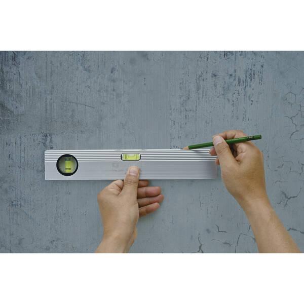 【商品説明】●特長●サイドキャップがフラットなので直角部分のケガキができる!●拡大レンズ付で大変見やすいです。精度の調整機構付で大変便利です。●垂直が付いて、柱や壁面の鉛直出しが行えます。精度の調整機構付で大変便利です。●蓄光付で、明るい所で光を蓄積して、暗い所で数分間発光します。●測定基準面がV溝付でパイプ等の測定ができます。●仕様、規格●サイズmm 全長600 H51×W19.5●製品重量 350g●本体カラー シルバー●感度 0.50mm/m=0.0286°精度 ±1.50mm/m=±0.0859°以内●アルミ合金押出材硬化処理●アルマイト・カラー塗装仕上げ●4本線アクリル気泡管●蓄光付