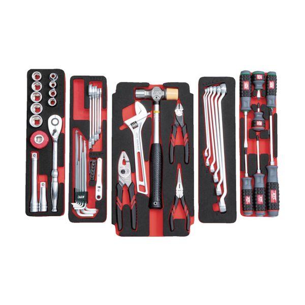 【商品説明】【特長】●車輌や一般機械整備に最適です。●充実したセット内容で好評の両開きケースタイプの工具セットです。●持ち運びやすさと、開けば一目瞭然の使いやすさです。【用途】●各種整備作業【仕様】●ケース色:シルバー●ケース寸法(mm)間口:440●ケース寸法(mm)奥行:233●ケース寸法(mm)高さ:230●セット内容(点):52●差込角(mm):12.7【仕様2】【材質/仕上】●本体:スチール【セット内容/付属品】●12.7sq.ソケット(六角):B4-10●12●13●14●17【注意】