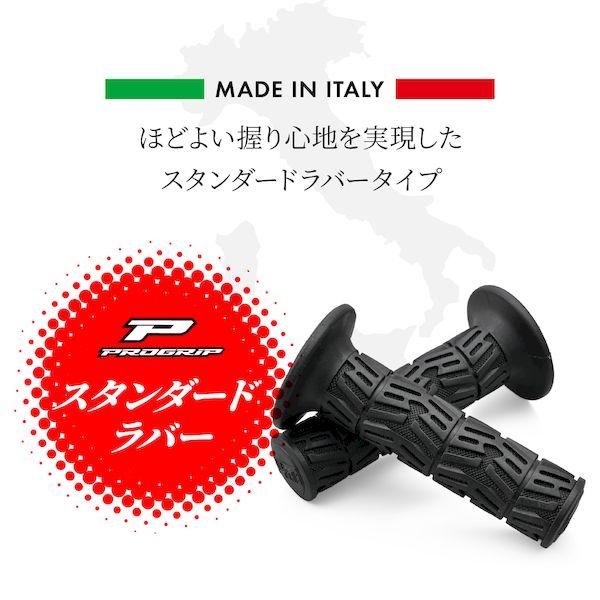 【商品説明】ほどよい握り心地のシングルラバー。ブラックカラーのスタンダードなデザインが多くのバイクにマッチ。エンド非貫通でバーエンドを付けないタイプ。【PROGRIP(プログリップ)】ヨーロッパにおけるハンドルグリップの代名詞「POROGRIP」。MotoGPやワールドスーパーバイク選手権で活躍するライダーへのスポンサードを行い、ノウハウを商品作りにフィードバックすることで多くの人々に愛用されています。●φ22.2mmハンドル用グリップ●グリップ長:125mm、内径(左/右):22mm/25mm●エンド非貫通タイプ●ほど良い握り心地のスタンダードラバー●バーエンドを付けないラリー(アドベンチャー)タイプ向きのデザイン