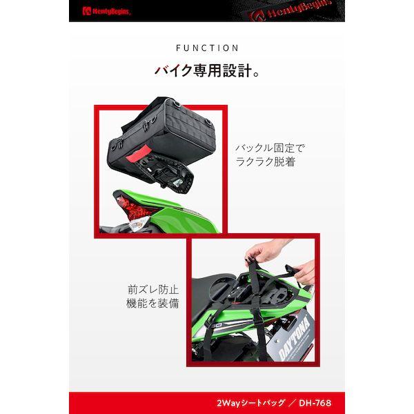 【商品説明】シートバッグとしてもバックパックとしても使える2WAYタイプ。2カ所の開口部が設けられ、どんなシーンでも使いやすく設計されています。表地は耐久性が高く軽量なコーデュラ、内装の裏地は、耐久性と高級感のある420デニール生地を採用。バッグ内部の連結ベルトを使えば負荷の掛かった状態でも型崩れしにくく、常に美しい形をキープできます。【バックパック】フレームが体に当たるのを防ぐために、腰パッドを装備。ショルダーベルトは肩に沿う形状で身体になじみ背負い心地がよく快適。大開口部には、バックパック使用時に使いやすいパルステープ付き。フラップ裏側のメッシュポケットは、充電ケーブルやモバイルバッテリーなどの収納に便利です。【シートバッグ】走行中でもバッグが前にズレないノンスリップシートを採用。ノンスリップシート+スライドストッパーのダブル効果で前後左右のズレに強くなります。イージリングベルトで簡単・確実・きれいにバッグを固定。バックパック用のベルトは背面に収納できるのでスマートに装着できます。・商品構成:本体、イージーリングベルト(N25B)、レインカバー●バックパックにも使える2WAYタイプのバイク用シートバッグ / 日帰りから1泊ツーリング用●表地には耐久性が高く軽量なコーデュラを採用●イージーリングベルトでバックルをはめるだけの簡単固定●ショルダーベルトは肩に沿う形状で背負い心地がよく快適。車載時、背面に収納できスマートに装着可能●容量:20L / サイズ:高さ170×幅440×奥行300mm / 総重量:1.8kg / 最大積載量:5kg