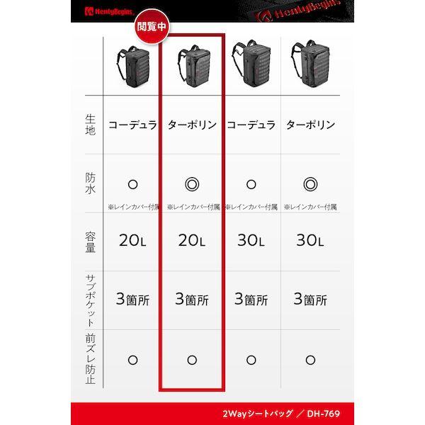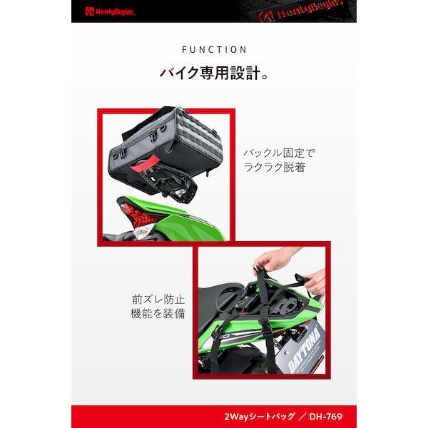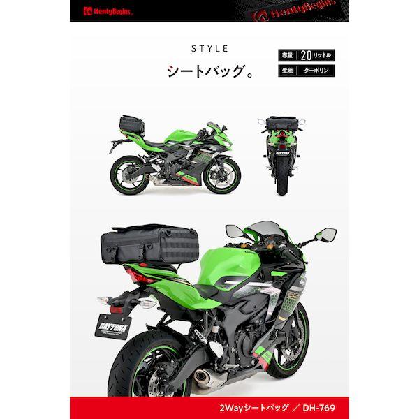 【商品説明】シートバッグとしてもバックパックとしても使える2WAYタイプ。2カ所の開口部が設けられ、どんなシーンでも使いやすく設計されています。表地は雨風に強い防水性のあるターポリン、内装の裏地は、耐久性と高級感のある420デニール生地を採用。バッグ内部の連結ベルトを使えば負荷の掛かった状態でも型崩れしにくく、常に美しい形をキープできます。【バックパック】フレームが体に当たるのを防ぐために、腰パッドを装備。ショルダーベルトは肩に沿う形状で身体になじみ背負い心地がよく快適。大開口部には、バックパック使用時に使いやすいパルステープ付き。フラップ裏側のメッシュポケットは、充電ケーブルやモバイルバッテリーなどの収納に便利です。【シートバッグ】走行中でもバッグが前にズレないノンスリップシートを採用。ノンスリップシート+スライドストッパーのダブル効果で前後左右のズレに強くなります。イージリングベルトで簡単・確実・きれいにバッグを固定。バックパック用のベルトは背面に収納できるのでスマートに装着できます。・商品構成:本体、イージーリングベルト(N25B)、レインカバー●バックパックにも使える2WAYタイプのバイク用シートバッグ / 日帰りから1泊ツーリング用●表地には雨風に強い防水性のあるターポリンを採用●イージーリングベルトでバックルをはめるだけの簡単固定●ショルダーベルトは肩に沿う形状で背負い心地がよく快適。車載時、背面に収納できスマートに装着可能●容量:20L / サイズ:高さ170×幅440×奥行300mm / 総重量:1.8kg / 最大積載量:5kg