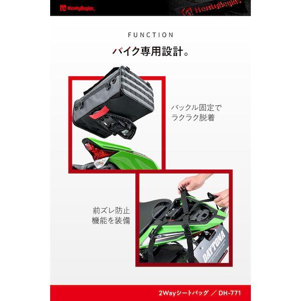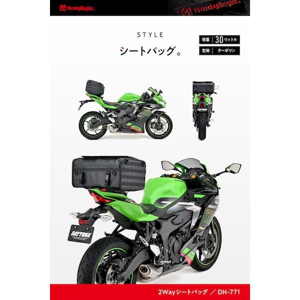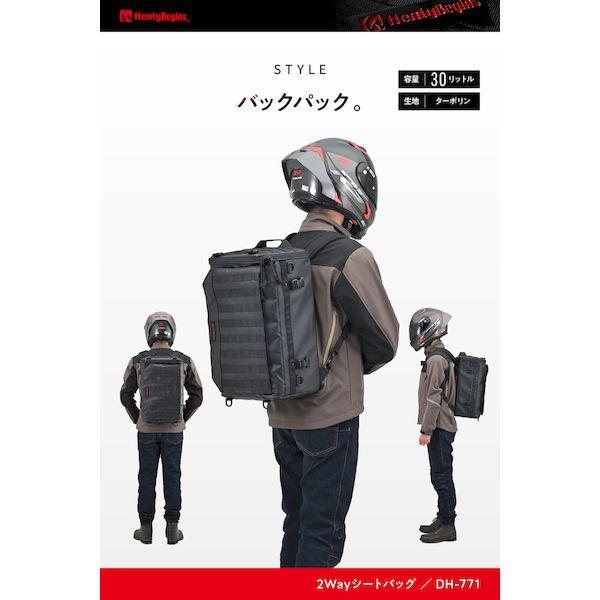 【商品説明】シートバッグとしてもバックパックとしても使える2WAYタイプ。2カ所の開口部が設けられ、どんなシーンでも使いやすく設計されています。表地は雨風に強く防水性のあるターポリン、内装の裏地は、耐久性と高級感のある420デニール生地を採用。バッグ内部の連結ベルトを使えば負荷の掛かった状態でも型崩れしにくく、常に美しい形をキープできます。【バックパック】フレームが体に当たるのを防ぐために、腰パッドを装備。ショルダーベルトは肩に沿う形状で身体になじみ背負い心地がよく快適。大開口部には、バックパック使用時に使いやすいパルステープ付き。フラップ裏側のメッシュポケットは、充電ケーブルやモバイルバッテリーなどの収納に便利です。【シートバッグ】走行中でもバッグが前にズレないノンスリップシートを採用。ノンスリップシート+スライドストッパーのダブル効果で前後左右のズレに強くなります。イージリングベルトで簡単・確実・きれいにバッグを固定。バックパック用のベルトは背面に収納できるのでスマートに装着できます。・商品構成:本体、イージーリングベルト(N25B)、レインカバー●バックパックにも使える2WAYタイプのバイク用シートバッグ / レインウエアやお土産も入る1泊ツーリング用●表地には雨風に強い防水性のあるターポリンを採用●イージーリングベルトでバックルをはめるだけの簡単固定●ショルダーベルトは肩に沿う形状で背負い心地がよく快適。車載時、背面に収納できスマートに装着可能●容量:30L / サイズ:高さ220×幅470×奥行300mm / 総重量:2.1kg / 最大積載量:5kg