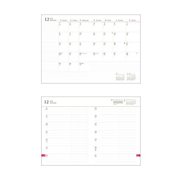 【商品説明】●タスク管理やライフログなど自由度が高く、チェックリストにもなる方眼スペースがついている●記入量がそれほど多くない方に最適、2週間の予定が一覧できる●見開き1ヵ月のブロックタイプ1ヵ月のスケジュールが一目で分かる●スピン2本、可動式ペンホルダー、インデックス付き●16ヶ月分(24年12月~2026年3月)●色:バイオレット●規格サイズ:A6●ページ数:128●付録:ペンホルダー/インデックス/目標記入欄/ノート(18ページ