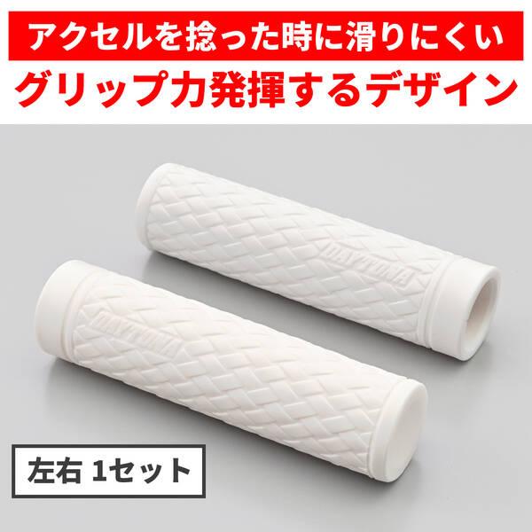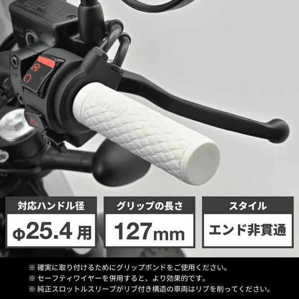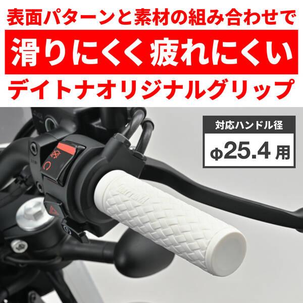【商品説明】滑りにくく疲れにくいデイトナのオリジナルグリップ。アクセルを握ったとき滑りにくい表面パターンと、グリップ力に優れる素材を組み合わせて、長時間のライディングでも疲れにくいグリップに仕上げました。編み込みデザインのKNITのツバを無くし、クローズドエンド化したクルーザー向けモデル。●φ25.4ハンドル用グリップ●グリップ長:127mm●エンド非貫通●滑りにくい表面パターン、握りやすい素材でグリップ力に優れる ●長時間のライディングでも疲れにくい