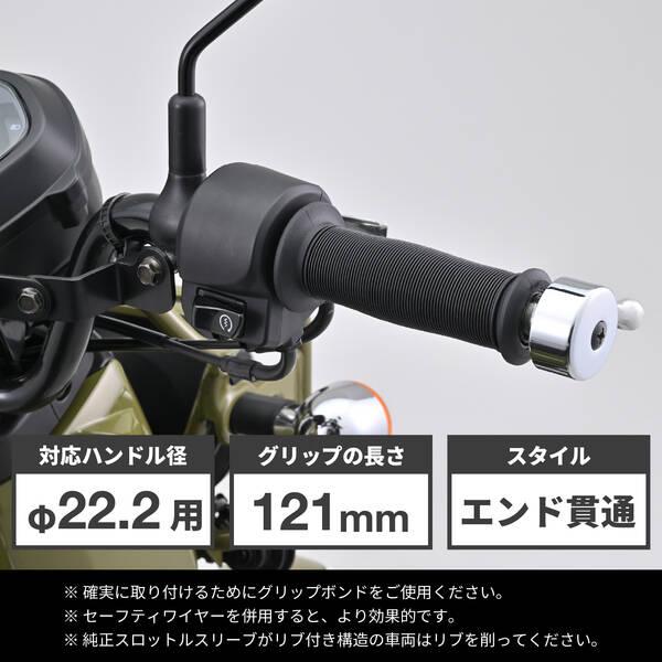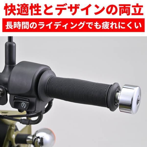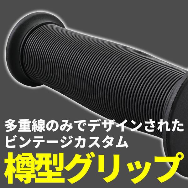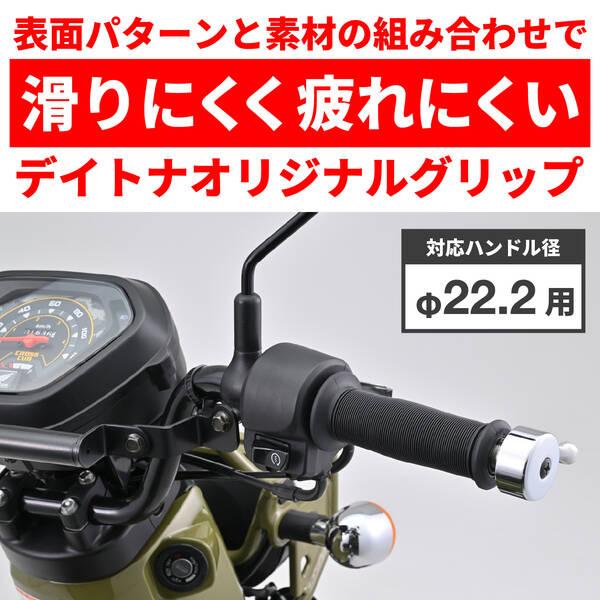 【商品説明】滑りにくく疲れにくいデイトナのオリジナルグリップ。アクセルを握ったとき滑りにくい表面パターンと、グリップ力に優れる素材を組み合わせて、長時間のライディングでも疲れにくいグリップに仕上げました。多重線のみでデザインされたビンテージカスタムマッチする樽型。握った際にほどよくつぶれ、横滑りしにくい。●φ22.2ハンドル用グリップ●グリップ長:121mm●エンド貫通●滑りにくい表面パターン、握りやすい素材でグリップ力に優れる ●長時間のライディングでも疲れにくい