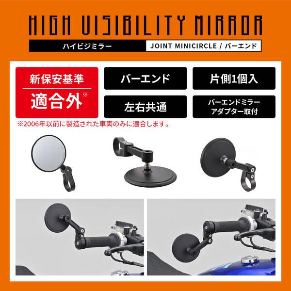 【商品説明】耐振性と広角視認性をそなえたバイク用バーエンドミラー。ヨーロッパで流行の厚さ5mmの超薄型ミラーヘッド。断面積を確保した高剛性アームで振動を軽減しミラーのブレを抑制しクリアな視界に。一般的に純正ミラーが曲率R1200-1300に対し、R1000の鏡面を採用しているので、後方視界を広く確保できます。・新保安基準適合外(2006年以前の車両専用)・鏡面にレーザーマーキング入り・クリアーミラー採用・左右共通 片側1本入り・アルミ削り出し・取付部Φ30、幅12mm●耐振性と広角視認性をそなえたバイク用バーエンドミラー●取付位置は関節アームを採用し自由に調節可能●鏡面:クリアーミラー/マットなブラック仕様 / 左右共通片側1本入り●2006年以前の車両専用(新基準には非対応)●取付には別売のバーエンドミラーアダプターが必要です※ 鏡面の直径が78mmのため新保安基準適合外です。平成18年(2006年)12月31日以前に製作された車両にのみ適合します。※ ハンドルを左右限界まで動かし、ミラーが車体に接触しないことを確認してください。※ ブレーキとクラッチレバーの操作を行ない、レバーとミラーアームが接触しないことを確認してください。※ ワイドミラータイプのため遠近感が純正と異なります。慣れるまで慎重に運転するよう心がけてください。※ 別売のバーエンドミラーアダプターが必要です。